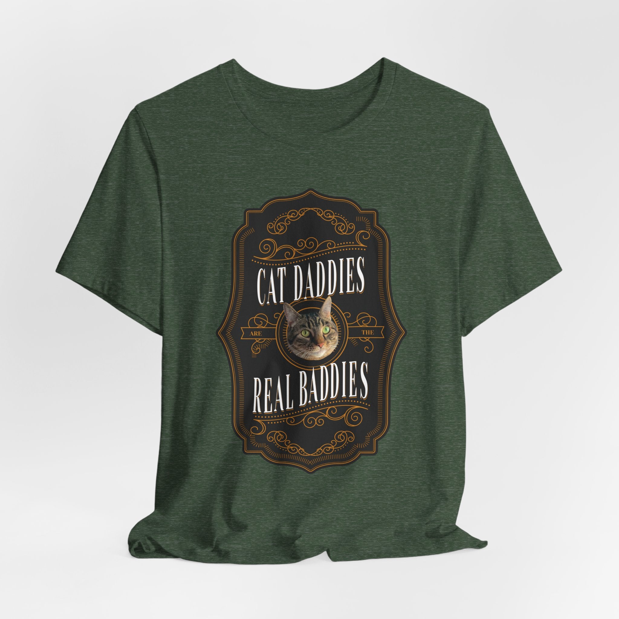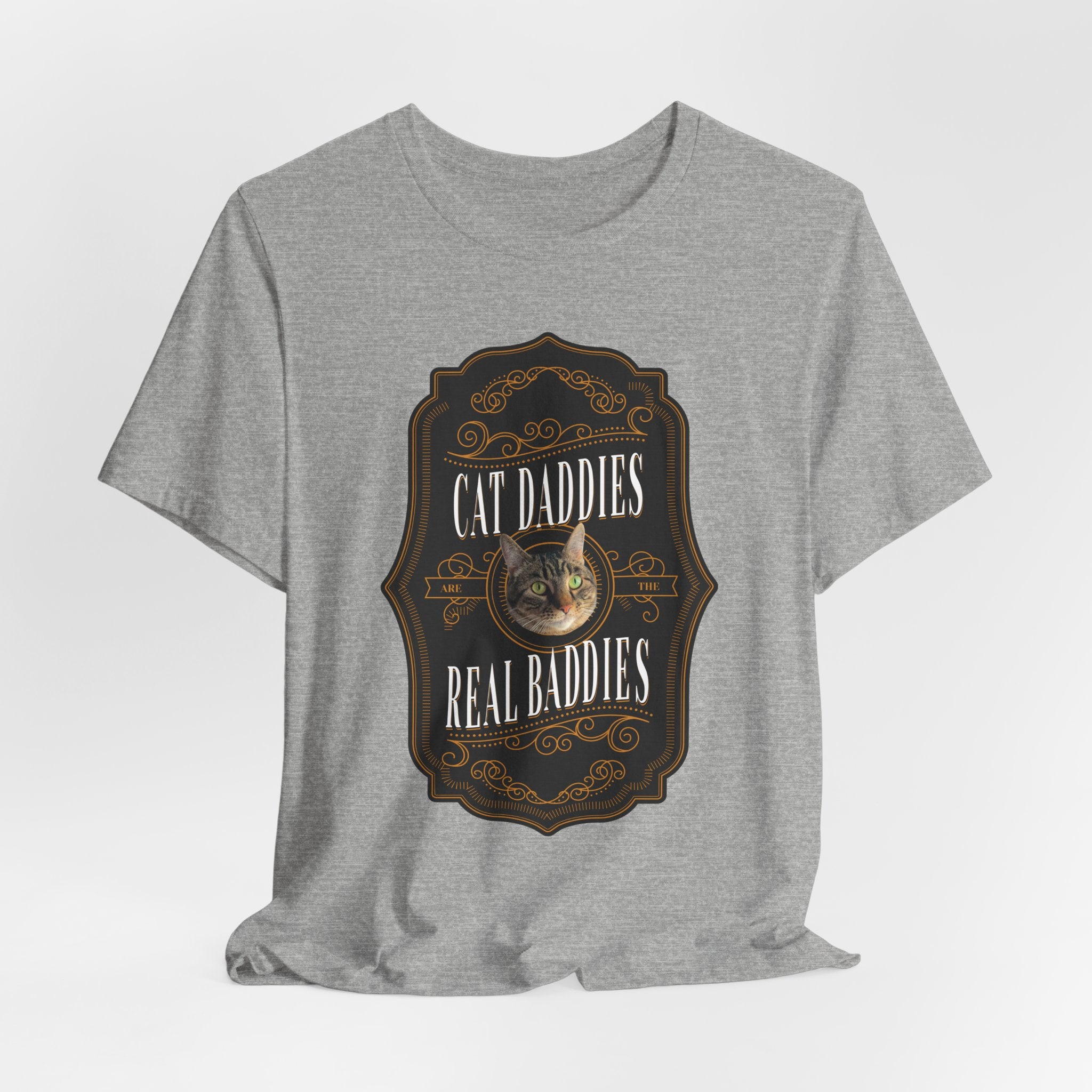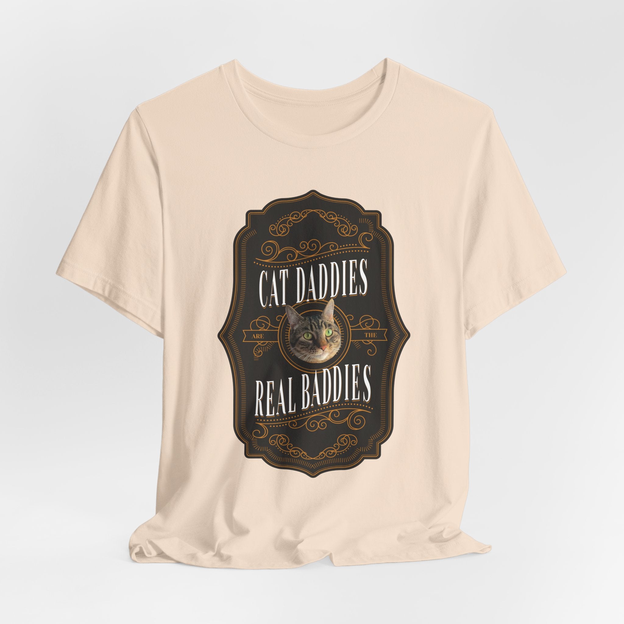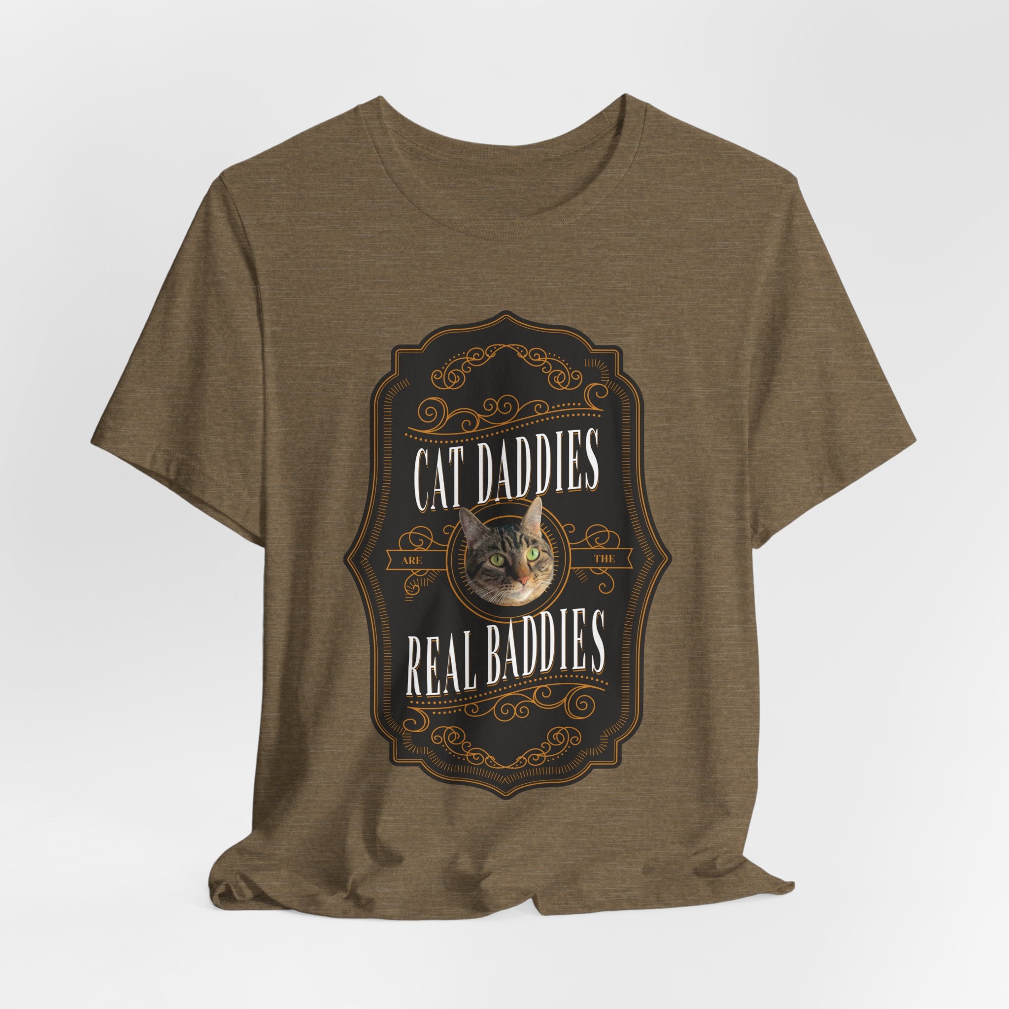 On the prowl for a one-of-a-kind gift that will make your favorite cat dad purr with pride? Look no further. The Custom “Cat Daddies Are The Real Baddies” Whiskey Label T-Shirt turns their beloved kitty into the star of a bold whiskey label inspired design. Each shirt is custom printed with your cat’s adorable face, surrounded by the playful phrase “Cat Daddies Are The Real Baddies.”