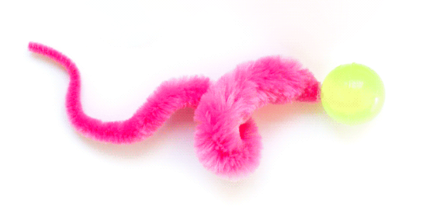 The Glow in the Dark Bouncy Ball Cat Toy is designed to appeal to your cat's natural hunting instinct with unpredictable, wiggly movements thanks to its long, squiggly tail. Cats love to carry it around once they catch it, too! This high-bouncing ball will have your cat chasing it for hours on end - zooming after it down the hall and even leaping in the air! Whether your cat likes to hunt "birds" or "mice" the Bouncy Ball provides a happy medium that will appeal to any avid hunter. The Glow in the Dark Bouncy Ball Cat Toy is handmade in the US and comes in assorted colors.