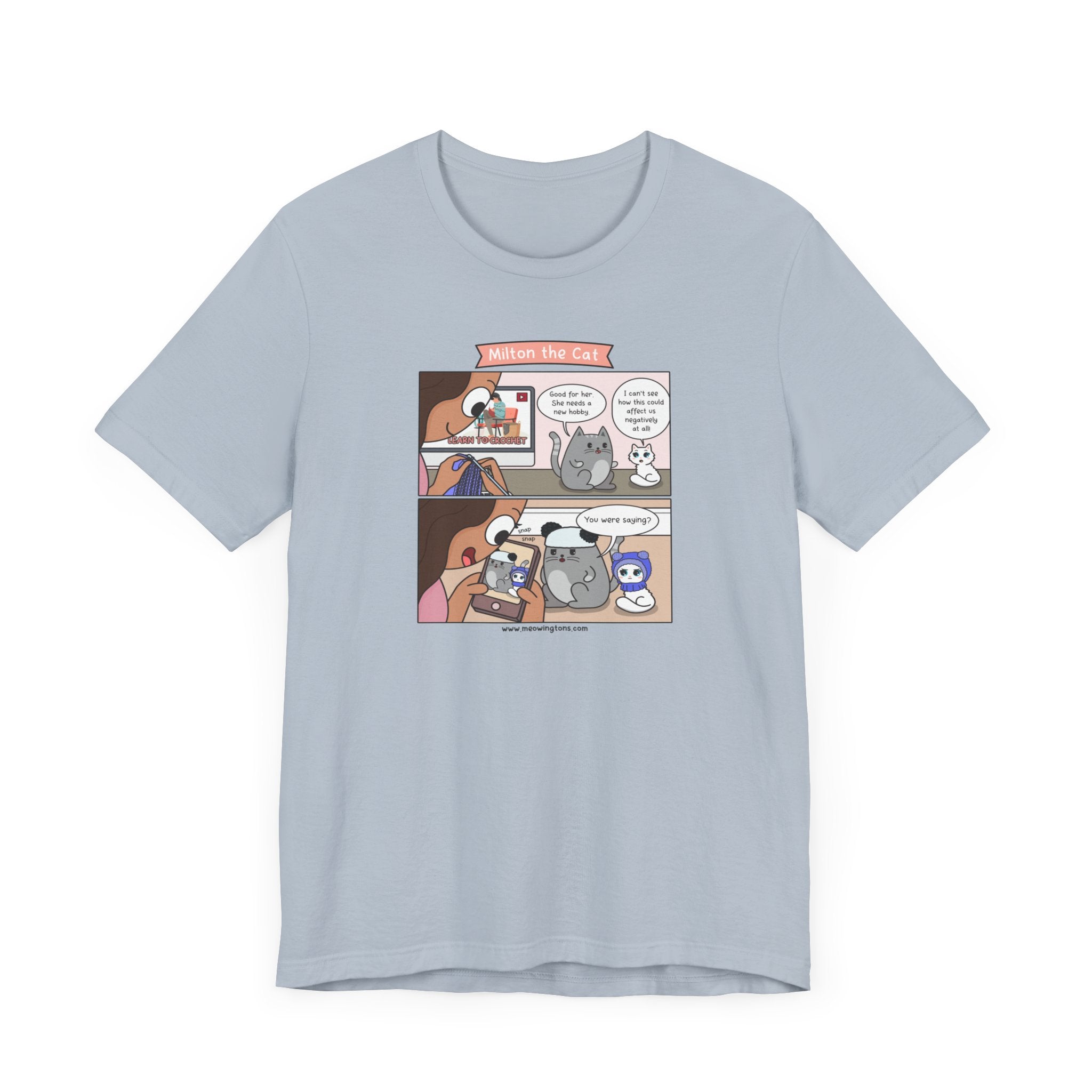 Whether you're lounging at home, running errands, or hanging out with friends, this versatile unisex tee is the perfect addition to any casual outfit. With a comfortable fit and a design that exudes personality, the Kitty Cat Crochet Comic T-Shirt is sure to become a wardrobe favorite for cat lovers of all ages.