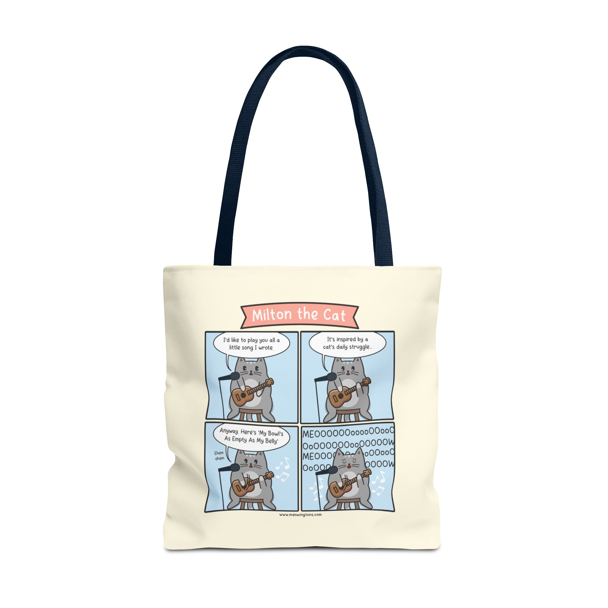 Introducing the Song of My People Cat Comic Tote Bag – a charming addition to our Milton the Cat Comic Collection, featuring everyone's favorite sassy tabby and his adorable sidekick, Millie. These two mischievous felines steal the show in our webcomic, Milton the Cat.